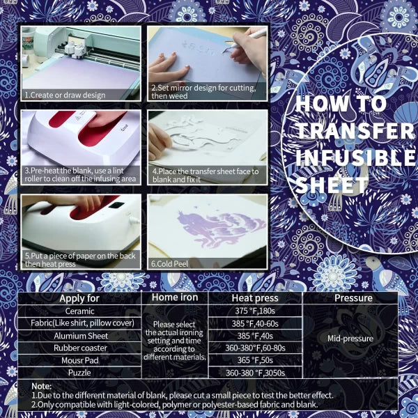 Mach deine DIY-Projekte noch lebendiger mit diesen hochwertigen Infusible Ink Transferfolien – perfekt für personalisierte T-Shirts, Tragetaschen, Untersetzer, Kissen und vieles mehr!